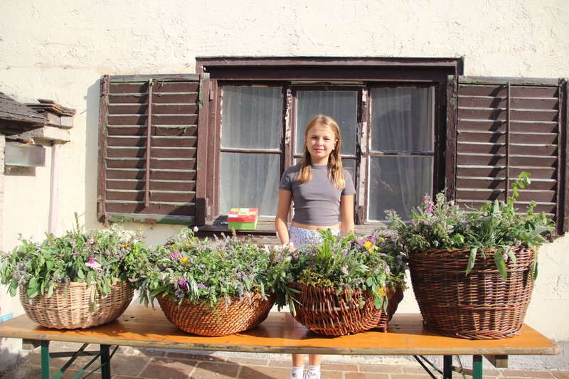 Auch heuer banden wir wieder Kräutersträuße aus Schafgarbe, Lavendel, Pfefferminze, Salbei, Rosmarin und Ringelblumen. Die geweihten Kräuterbuschen sollen Familie und ihr Vieh das gesamte Jahr über vor Unheil, Krankheit und Verzauberung schützen, den Hof vor Blitzschlag bewahren, das Eheglück fördern oder für Kindersegen sorgen.