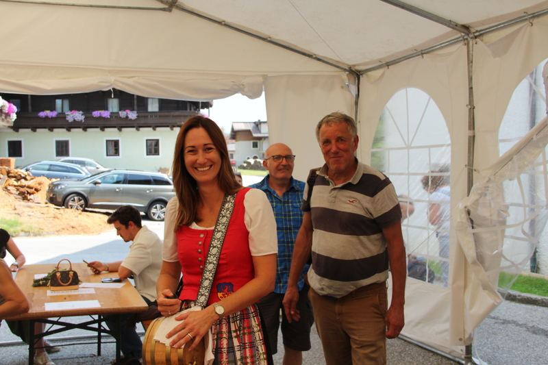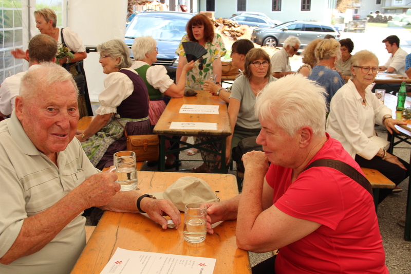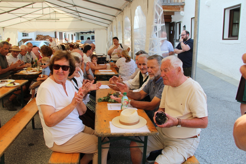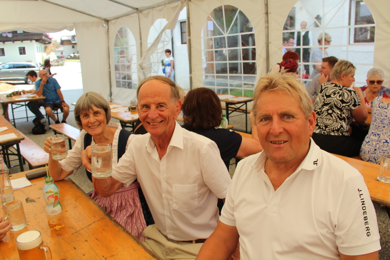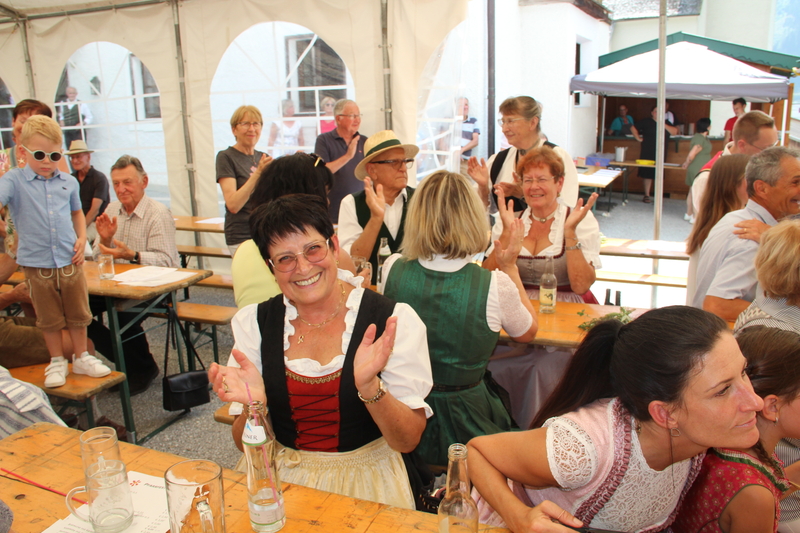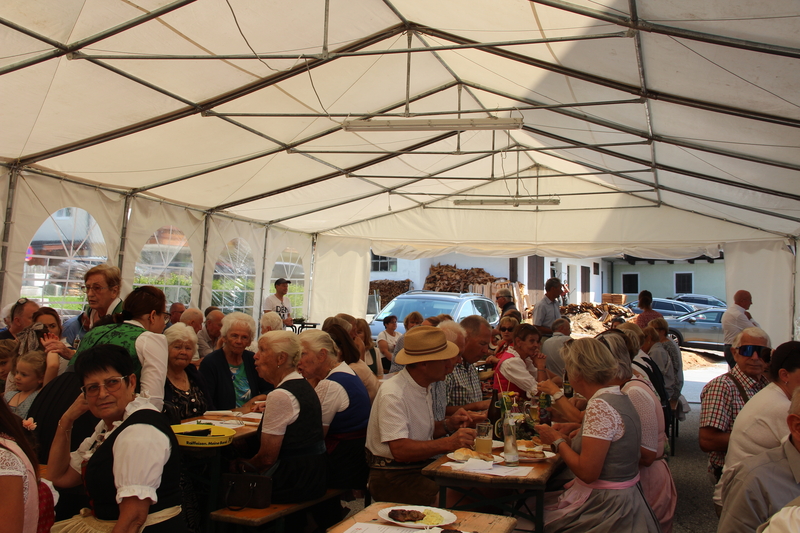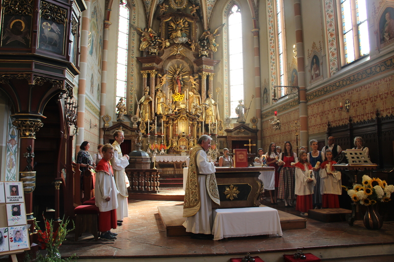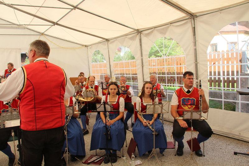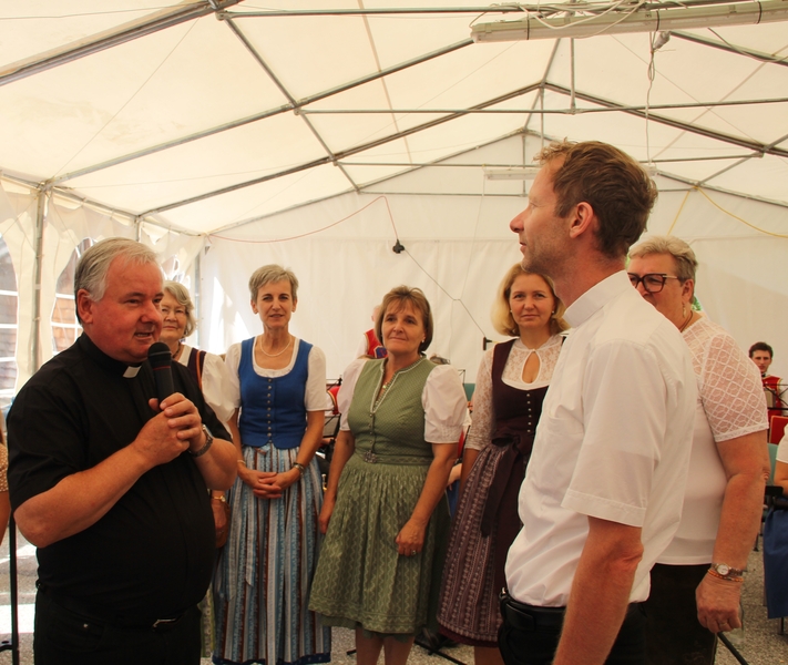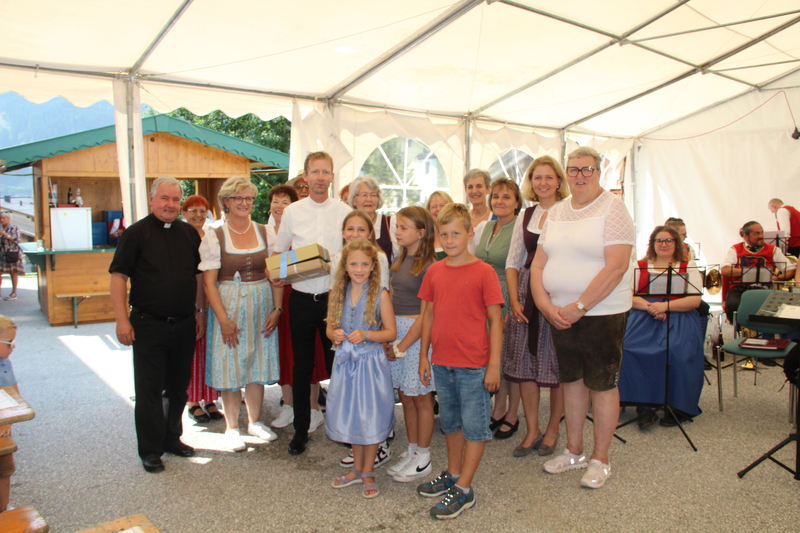 Nach dem feierlichen Gottesdienst lud der Pfarrgemeinderat zum Fest in den Pfarrgarten. Die Trachtenmusikkapelle Stuhlfelden unterhielt die Gäste großartig und bei sommerlichem Wetter konnte das Pfarrfest wundervoll ausklingen. Leider hieß es Abschied nehmen. Kooperator Josef Grünwald muss am 01. September unseren Pfarrverband nach 3 Jahren verlassen. Pfarrer Adalbert Dlugopolsky bedankte sich bei Josef für die gute Zusammenarbeit. PGR Obfrau Ella Gratzl und Kfb Obfrau Elfriede Hochstaffl verabschiedeten unseren Kooperator mit netten Worten und einer Taufstola. Besonders schwer viel unseren Minis der Abschied von Sepp. Ein selbstgestaltets Fotobuch soll ihn lange an ihre gemeinsamen Stunden erinnern.