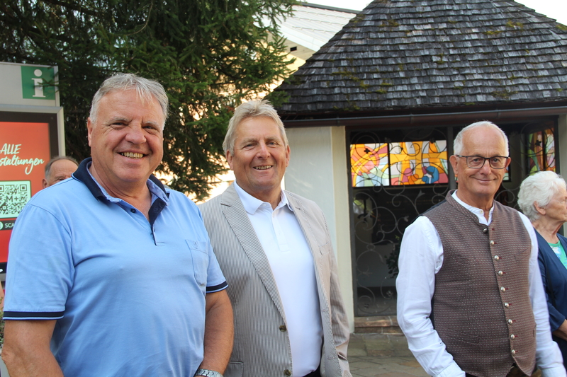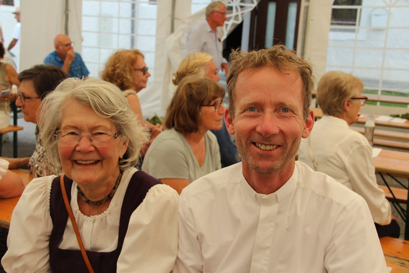 Nach dem feierlichen Gottesdienst lud der Pfarrgemeinderat zum Fest in den Pfarrgarten. Die Trachtenmusikkapelle Stuhlfelden unterhielt die Gäste großartig und bei sommerlichem Wetter konnte das Pfarrfest wundervoll ausklingen. Leider hieß es Abschied nehmen. Kooperator Josef Grünwald muss am 01. September unseren Pfarrverband nach 3 Jahren verlassen. Pfarrer Adalbert Dlugopolsky bedankte sich bei Josef für die gute Zusammenarbeit. PGR Obfrau Ella Gratzl und Kfb Obfrau Elfriede Hochstaffl verabschiedeten unseren Kooperator mit netten Worten und einer Taufstola. Besonders schwer viel unseren Minis der Abschied von Sepp. Ein selbstgestaltets Fotobuch soll ihn lange an ihre gemeinsamen Stunden erinnern.