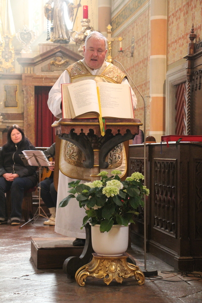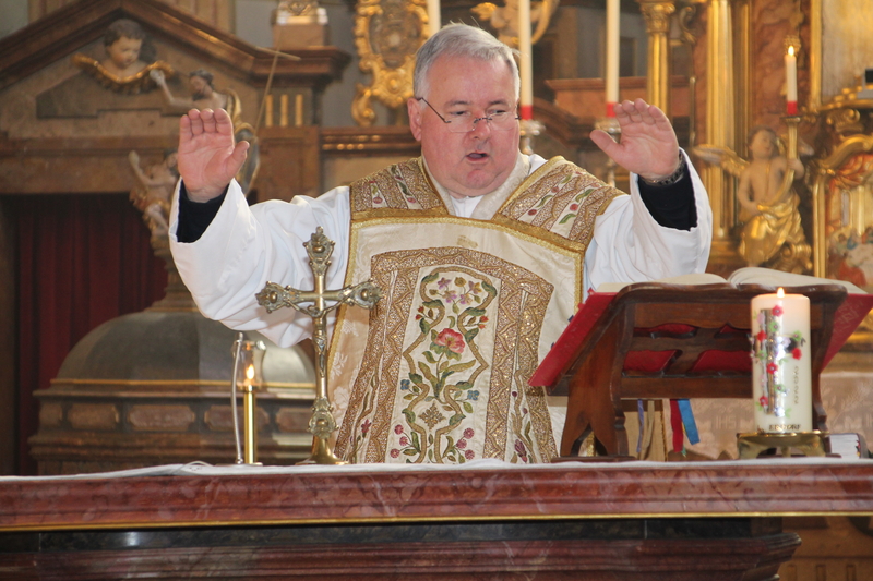 Mit einem kurzen Einblick der Geschichte des Hl. Nepomuk begann Pfarrer Adalbert Dlugopolsky die Messe. Er dankte auch allen die daran beteiligt waren und wies auf die Wichtigkeit der Erhaltung dieser Kleindenkmäler hin.